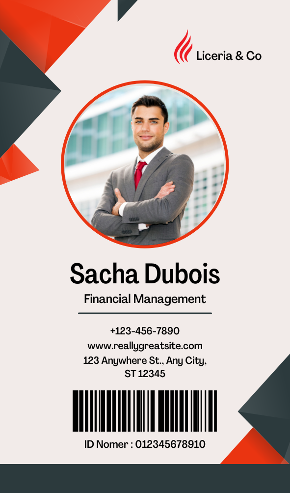 Drak Gray and Red Modern Professional Financial Management Vertical Business Card